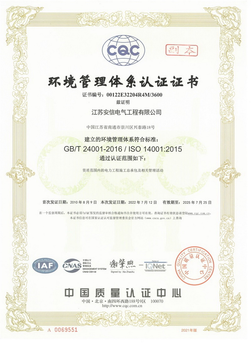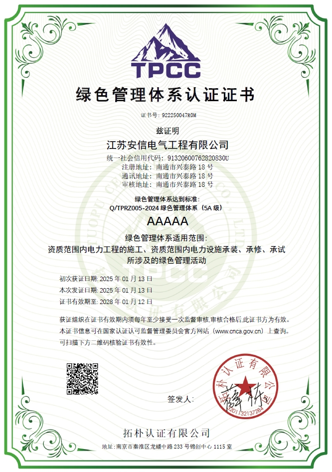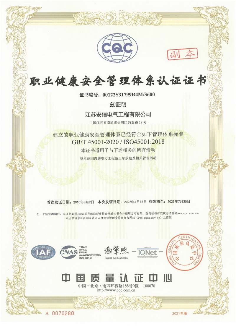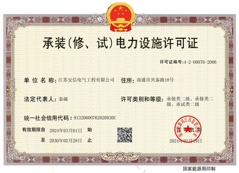 在創(chuàng)業(yè)之初,公司就堅持高起點的戰(zhàn)略思路,廣納賢才,集聚行業(yè)精英,創(chuàng)新發(fā)展,做優(yōu)企業(yè)品牌。現(xiàn)已取得:承裝二級、承修二級、承試二級,電力工程施工總承包二級,輸變電工程專業(yè)承包二級,建筑工程施工總承包二級,建筑機電安裝專業(yè)承包二級,地基基礎專業(yè)承包二級資質(zhì)證書,并通過了質(zhì)量、環(huán)境、職業(yè)健康和安全管理體系認證,確保各項工作有序管控。